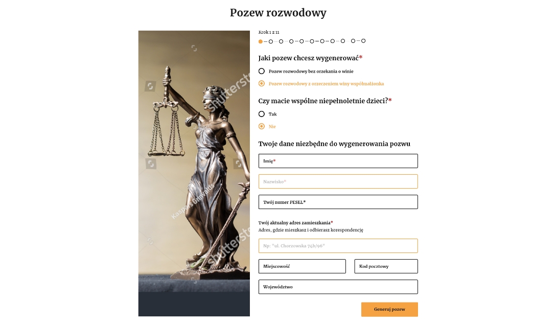 W oparciu o Twoje odpowiedzi zostanie w następnych krokach wygenerowany Twój dokument. Jego treść jest dostosowana do Twoich odpowiedzi.